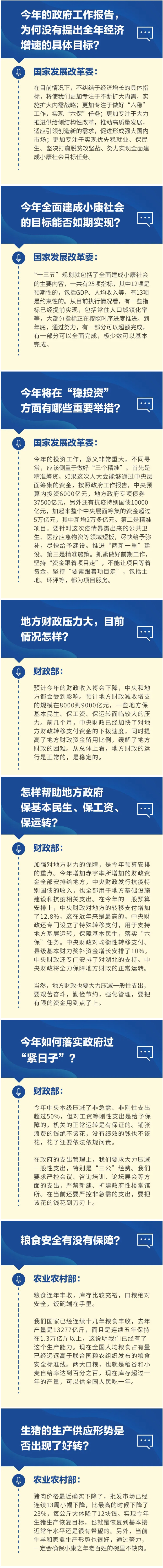 十三屆全國人大三次會(huì )議于2020年5月22日上午在北京人民大會(huì )堂開(kāi)幕。會(huì )議結束后舉行首場(chǎng)“部長(cháng)通道”采訪(fǎng)活動(dòng),邀請國家發(fā)展和改革委員會(huì )主任何立峰、財政部部長(cháng)劉昆和農業(yè)農村部部長(cháng)韓長(cháng)賦通過(guò)網(wǎng)絡(luò )視頻方式接受采訪(fǎng)。各部門(mén)回應了哪些關(guān)切,一起來(lái)看——