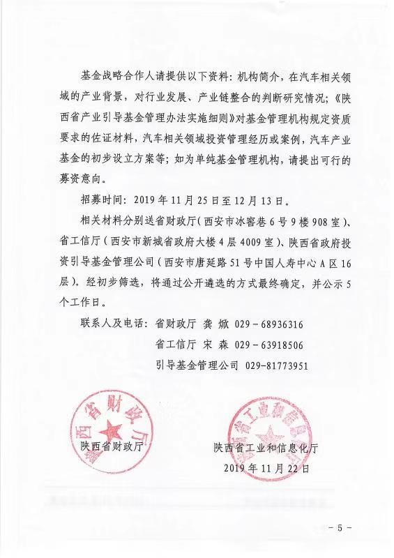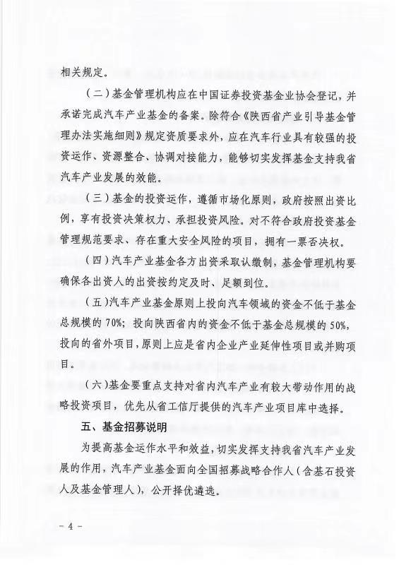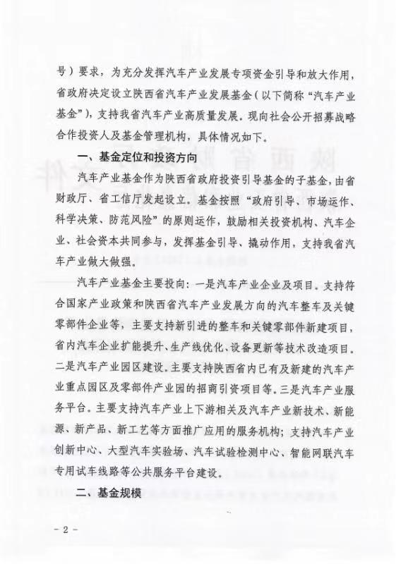 陜西省汽車(chē)產(chǎn)業(yè)發(fā)展基金公開(kāi)招募戰略合作人
