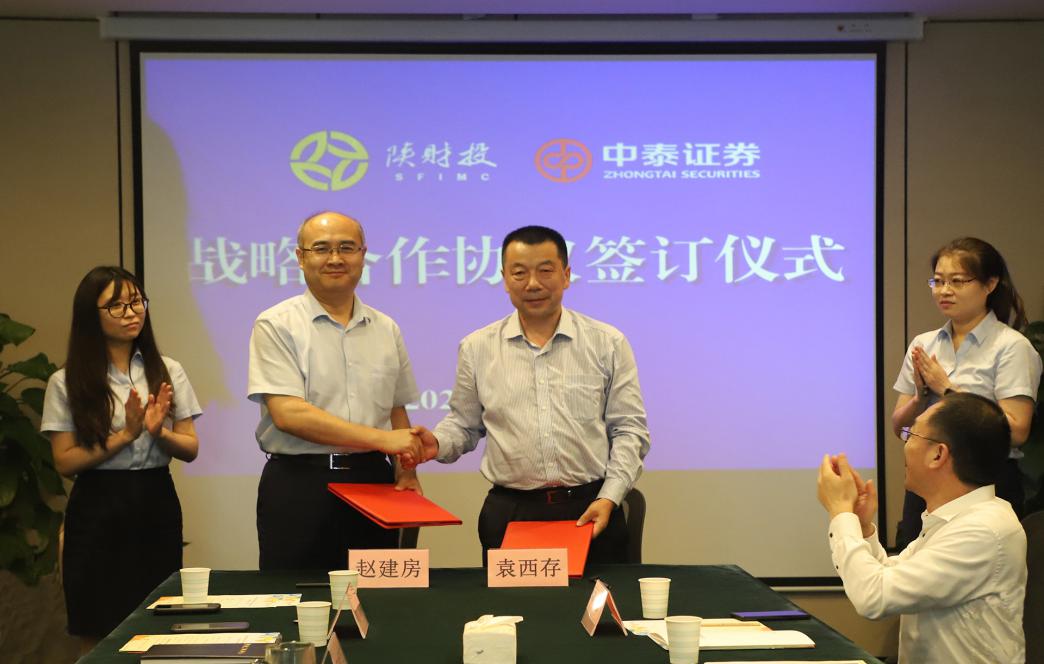 會(huì )上,李瑋董事長(cháng)、王銀科總經(jīng)理對公司成立背景、金融業(yè)務(wù)發(fā)展等有關(guān)情況分別做了詳細介紹,并就開(kāi)展金融投資合作事宜進(jìn)行了深入溝通和交流。隨后,陜財投副總經(jīng)理趙建房、中泰證券副總裁袁西存作為代表簽訂了戰略合作協(xié)議。