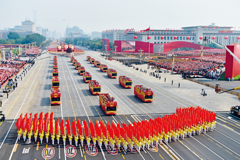 中國的昨天已經(jīng)寫(xiě)在人類(lèi)的史冊上,中國的今天正在億萬(wàn)人民手中創(chuàng )造,中國的明天必將更加美好。全黨全軍全國各族人民要更加緊密地團結起來(lái),不忘初心,牢記使命,繼續把我們的人民共和國鞏固好、發(fā)展好,繼續為實(shí)現“兩個(gè)一百年”奮斗目標、實(shí)現中華民族偉大復興的中國夢(mèng)而努力奮斗!
